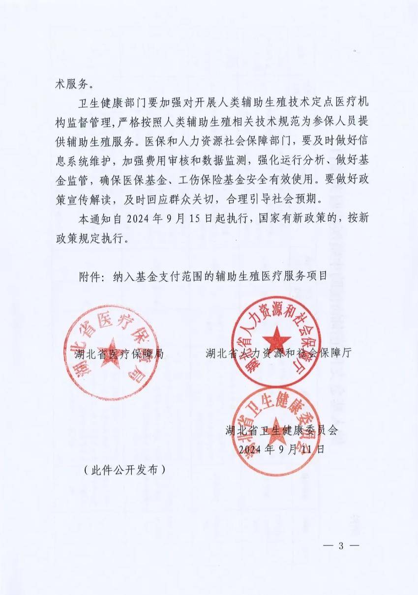 自2024年9月15日起,湖北省将“取卵术”等8项辅助生殖类医疗服务项目纳入医保支付范围。只要是湖北省内参保人员,并在湖北省内定点医疗机构门诊接受辅助生殖治疗,即可享受此项福利。